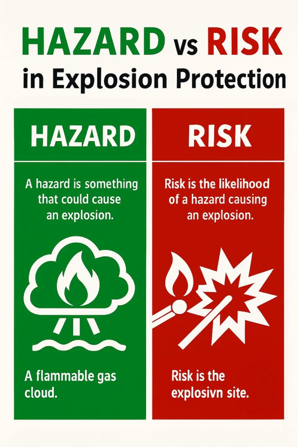 Definition: Risk is the likelihood and severity of an explosion occurring due to the hazard.