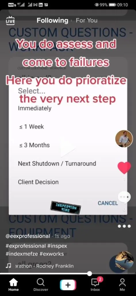 If Ex inspection happens to be under non validated hazardous area E.g HAC is older than 3yrs old; neither referenced to site nor technology