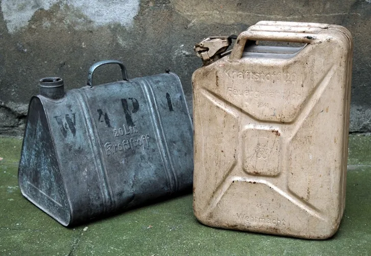 20 litre fuel cans: old design on the left, 1941 Nirona Wehrmacht fuel can on the right